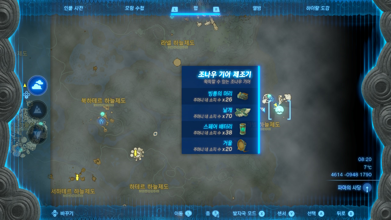 이번 포스트에서는 젤다 왕눈에서 모든 조나우 기어를 얻기 위해서 가야 하는 제조기 8군데를 소개합니다.