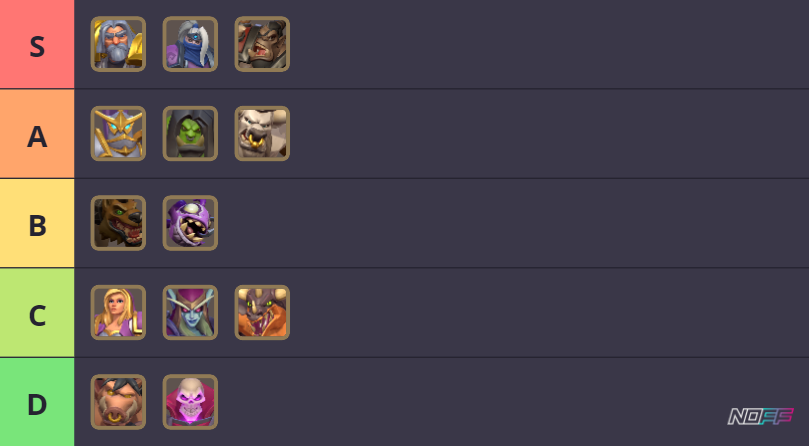 NOFF에서 제공하는 Tier List에서 지휘관만 추출해서 만들었습니다. 그리고 지휘관이 맵빨을 받는 경향이 있기도 해서 절대적이지는 않습니다. 다만, S급에 있는 티리온, 리븐데어, 블랙핸드는 PVP, PVE 모두 아주 훌륭하기 때문에 매우 강력 추천합니다. 초보자들이라면 저 세가지 지휘관을 꼭 선택하시길 바랍니다.