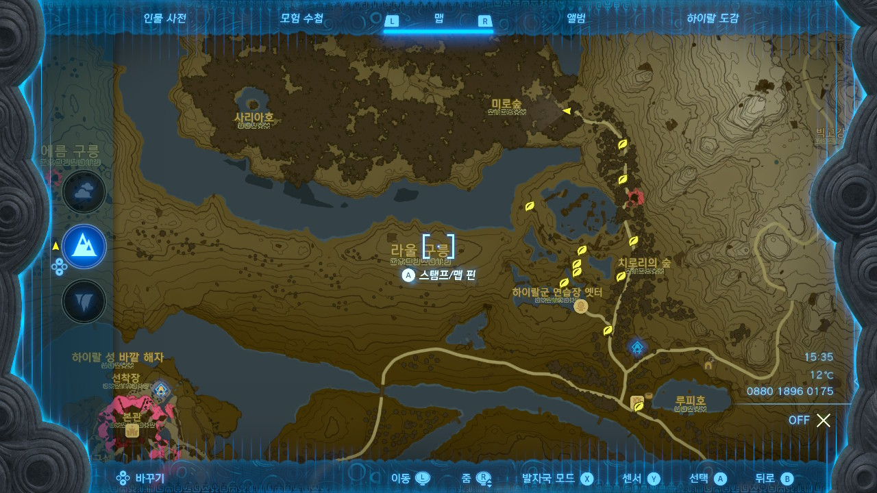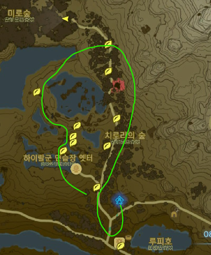 칼날 버섯이 많이 나오는 곳은 숲의 마구간 북쪽에 있는 "치로리의 숲"입니다. 아래 지도에 있는 마커 위치에서 파밍이 가능합니다.