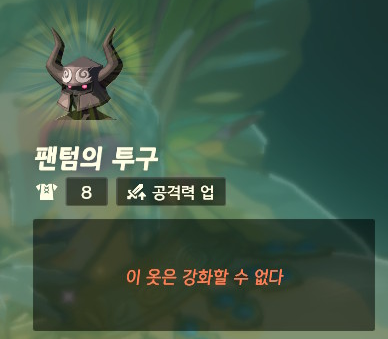 강화가 불가능한 아이템입니다. 다만, 파밍 즉시 방어력 24를 얻을 수 있기 때문에 초반에 사용하기 좋습니다. 귀신 세트 나 야만족 세트의 경우 +2강 업그레이드를 해야 얻을 수 있는 방어력이죠.