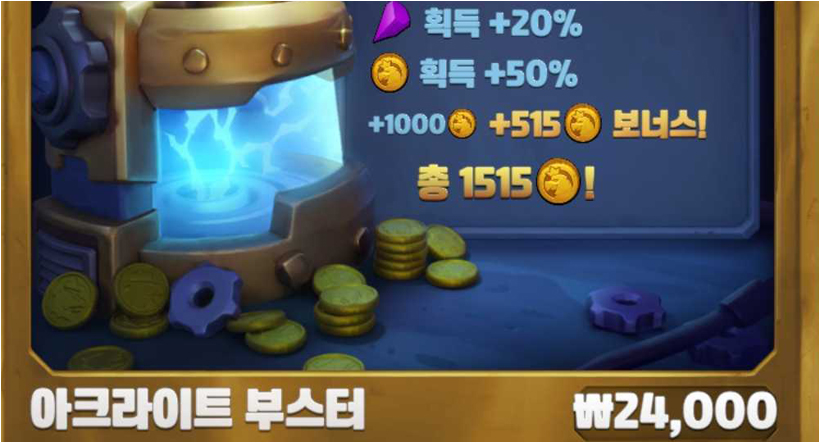 부스터 유무에 따라 차이가 많이 나기 때문에 24000원 짜리 아크라이트 부스트는 구매하는 것을 추천드립니다. 경험치 보너스도 매우 좋습니다.
