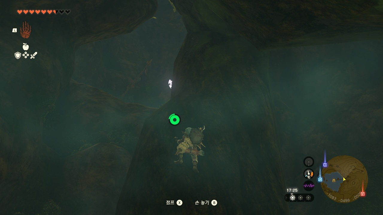 들어가면 큰 나무 뿌리가 위로 향해있는데, 뿌리를 타고 올라갑시다. 올라가는데 스테미너 한줄이 소모되니 점프는 자제해주세요. 아니면 물약을 드세요.