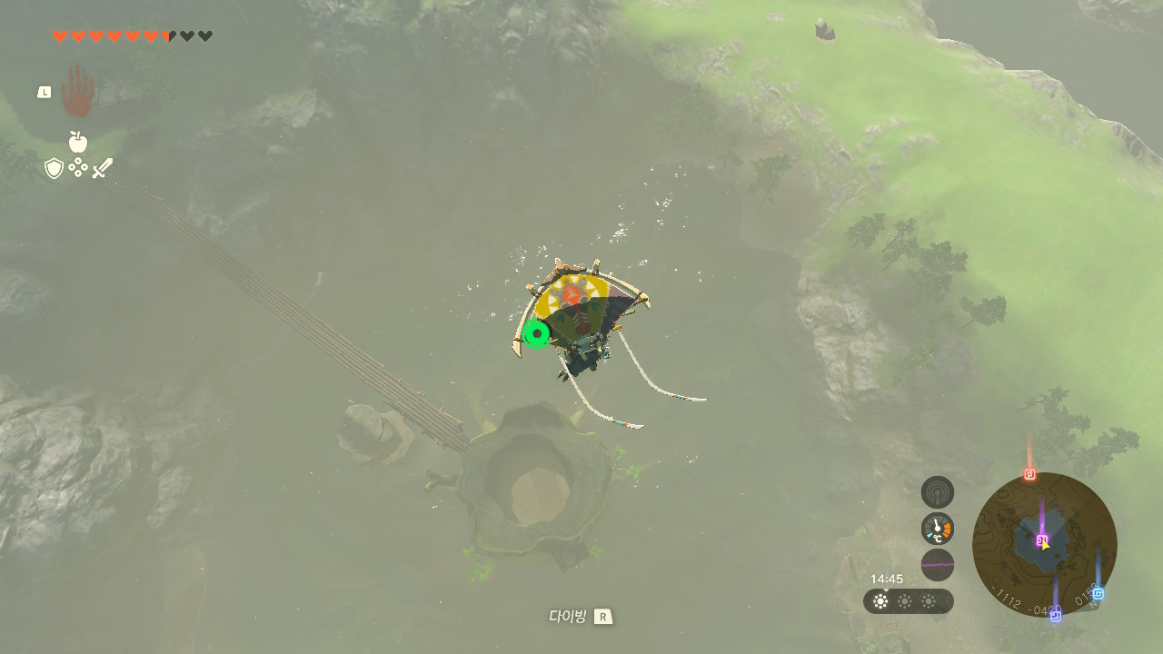 "귀신의 부츠"는 다프네산 북쪽 호수 가운데 있는 나무 그루터기에 있습니다. "썩은 천년수"라는 곳인데, 나무 기둥 속으로 들어가면 동굴이 나타납니다. "하이랄 평원 조망대"에서 날아갈 수 있는데, 제법 거리가 있어서 페러세일로 오시려면 스테미너 물약을 챙기시거나, 페러세일 도중 날개를 꺼내서 타고 이동하는 것을 추천합니다.